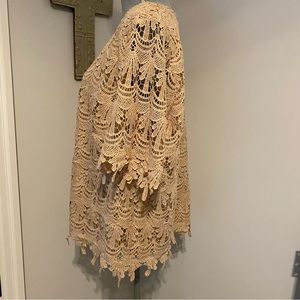 Adiva short sleeve top. Lined, beautiful lace detail, scoop neck and keyhole back with button, boxy style.