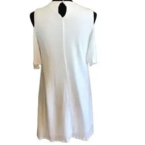 Cute cold shoulder dress. Can be dressed up or worn casual. Excellent condition.