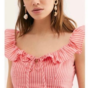 Free People Young Love Coral Striped Crop Top