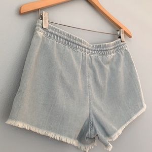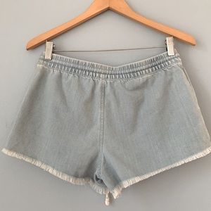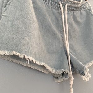 Aerie • Chambray Frayed Jean Shorts With Elastic Drawstring Waist Size Small