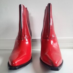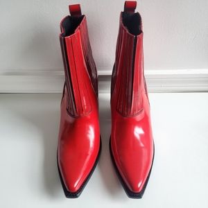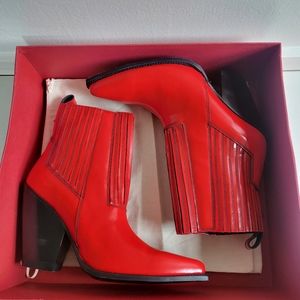 New With Tag Valentino Garavani Rockstud Leather Western Coachella Red Boots with faint scratches at soles & heels (see all photos).