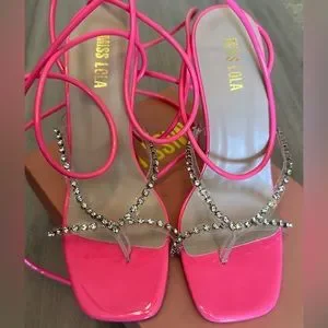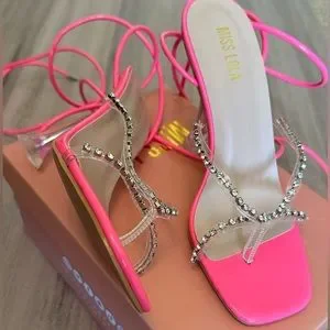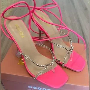 Adjustable Ankle Lace-up Heel Height Approx 4.25 in Open Square Toe New, never worn. In original box