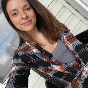 featuring point collar, front chest patch pocket, back yoke pleat, plaid print, high low hem, and cuff sleeves, oversized fit (see size details below). Button down long sleeve dress shirt. Excellent condition. Only worn twice, like new! No rips no tears no stains. Lightweight and breathable!