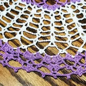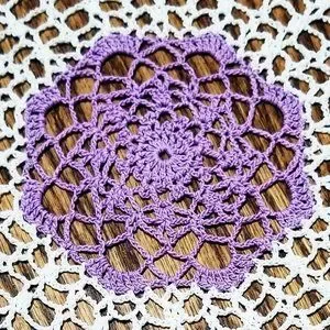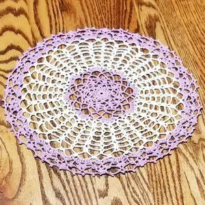You will be purchasing a new, beautifully stitched Candy Dish 12" Doily. The doily is hand crocheted using Violet Aunt Lydia's size 10 crochet cotton. Pre-washed. Blocked. Starched to shape. Washing instructions are included with doily in shipping.