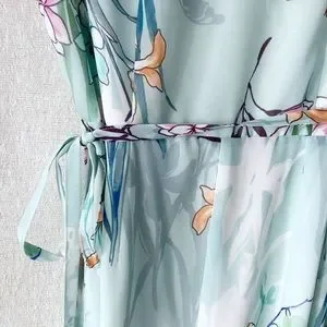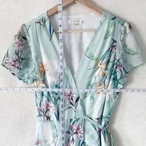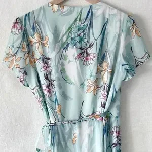 Yumi Kim Wrap Maxi Dress Woman’s Size Medium Mint Green Floral Print. Snap front. In great pre loved condition. Comes from a smoke free and pet free home.