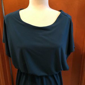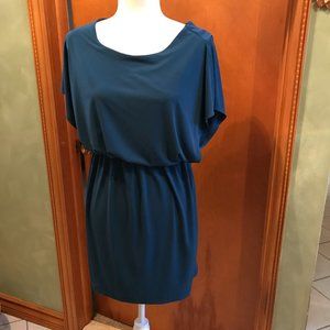 Lovely blue/green Sweet Storm dress. Great for a cocktail party, summer garden party, or evening out. Arm sleeves are open on side See picture. Very comfortable dress. Preowned in excellent condition. No signs of damage to material. Material Polyester 95% and Spandex 5 %. Lining is Polyester 100%. Machine washable. Size Medium