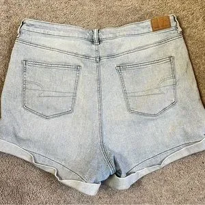 American Eagle Women's Size 14Distressed Cuffed Mom Jean Shorts Light Wash Blue