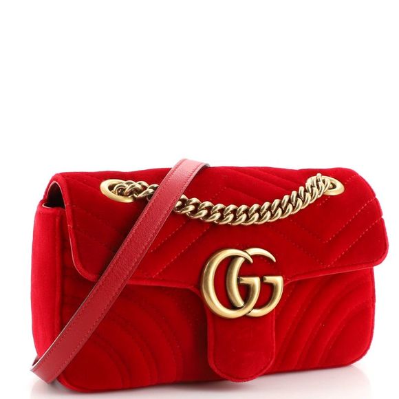 Gucci GG Marmont Flap Bag Matelasse Velvet Mini Red