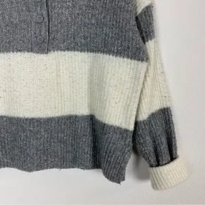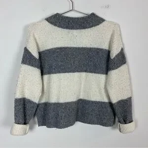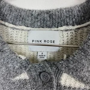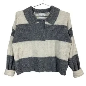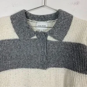 Pink Rose Gray & White Ribbed Collared Sweater