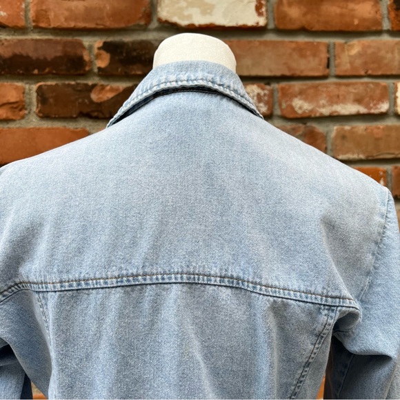 Long sleeves, light wash, silver hardware, mini dress