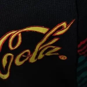 Up for sale is an Attractive Vintage 1980s “Coca Cola” Apparel Brand, Black & Yellow, Embroidered collared 1/2 button up, Knitted Sweated and dalated 1986.