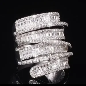 Absolutely stunning 3.4CT CZ Huge Wide Silver Plated Ring!! This ring will light up the an entire ballroom with sparkles. Wow!!✨✨✨✨✨