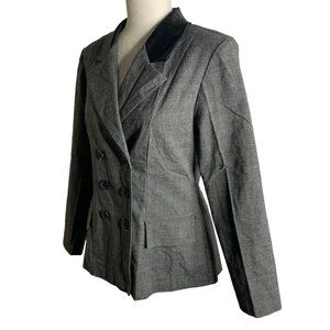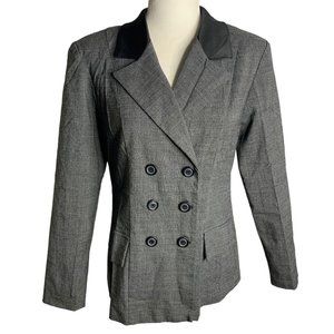 Vintage Dress Barn Skirt Suit Set 8 Black Check Double Breasted Satin Collar