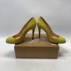 Christian Louboutin Ron Ron Suede lime green / Anis round toe high heeled pumps