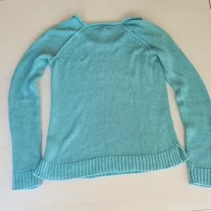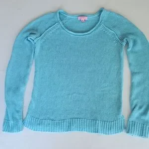 Lilly Pulitzer acrylic knit sweater with roll neck in flattering and summery teal / aqua / marine blue color.