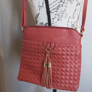 Red and Gold Accent Crossbody Purse w/ Animal Print Interior 8" x 8" USED ONCE!