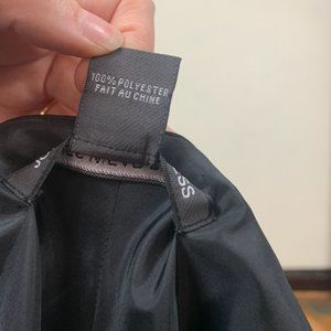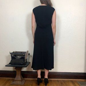 Jones Wear Dress vintage 90s black formal cocktail dress. Shoulder pads, midi length, made of 100% polyester. Beaded neckline, sleeveless or very short cap sleeves.