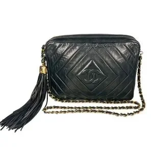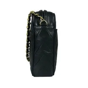 Chanel Black Lambskin Leather CC Quilted Camera Chain Crossbody Bag