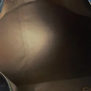 Exterior: overall aging, darkening of canvas, darkening/flawing/staining of vachetta, wrinkling.