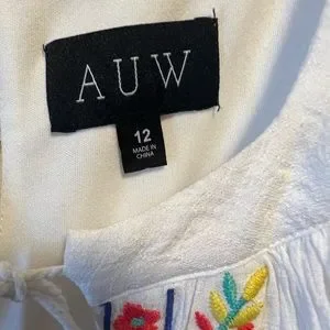 Beautiful white cotton embroidered dress Very colorful and comfy size 12 by AUW No stains great preowned condition