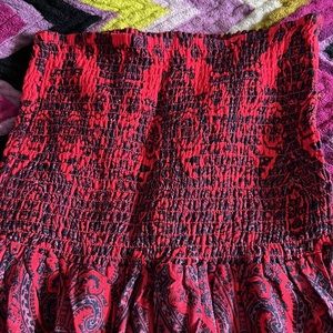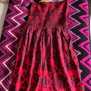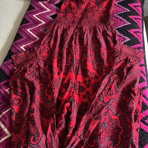 Free People red with Purple and Navy Paisley Strapless Romper Onesie. Elastic top and elastic gathered cuffs at the ankles. Great condition. Medium.