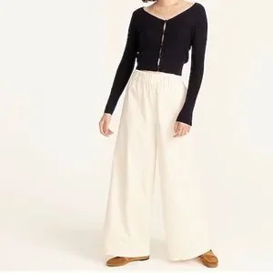 J. Crew Pull On Wide Leg Chino Pant Elastic Waist Summer Crop AY943 Tall Large