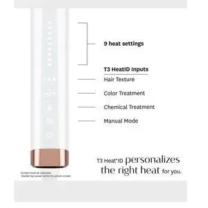 Eliminate the guess work with personalized heat. T3 HeatID delivers first-of-its-kind styling personalization with a smart touch interface and 9 precise heat settings that automatically adjust to your specific hair needs without overexposing your hair to unnecessary heat. Input your unique hair profile based on hair texture, color and chemical treatments for optimized heat and smooth, shiny curls that last.