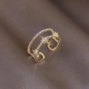 Gold Exquisite Double-layer Zircon Star Adjustable Ring For Women
