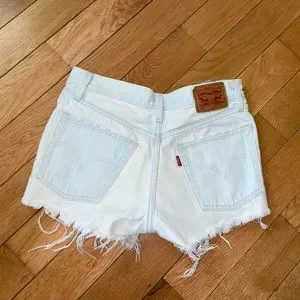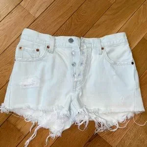 Levi 501 High Waisted Denim Distressed Shorts - Light Blue / Almost White