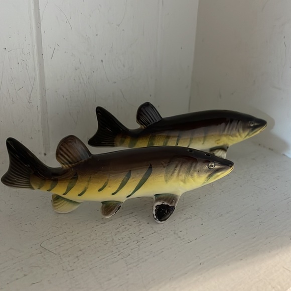 Beautiful pair of trout salt & pepper shakers. Made in Japan. No chips or marks. Excellent condition.