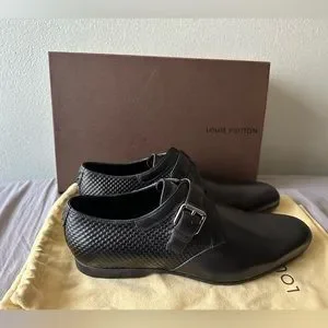 Louis Vuitton Men Shoes Damier Black Leather buckle 9.5UK 10.5US New Never Worn