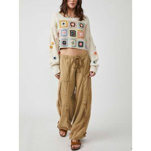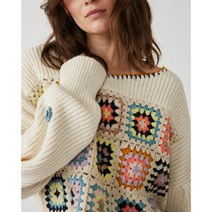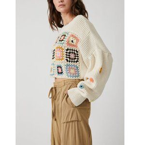 NWT Free People Dahlia Crochet Pullover / Antique Pearl Combo