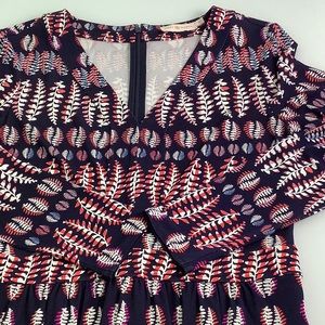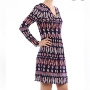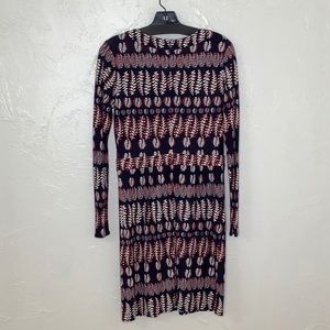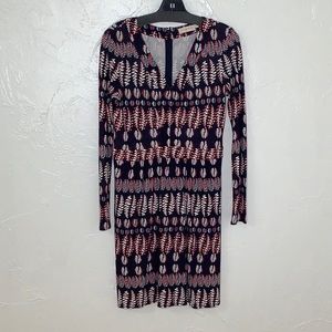 Tory Burch V neck Viscoce Fantasy Printed long sleeves dress size Small EUC
