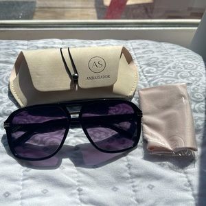 Brand new! Comes with EVERYTHING pictured 🤩 They’re so comfortable and stylish, they’re anti glare as well 😎 very high quality sunglasses! Black/purple colored aviators without nose pieces