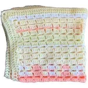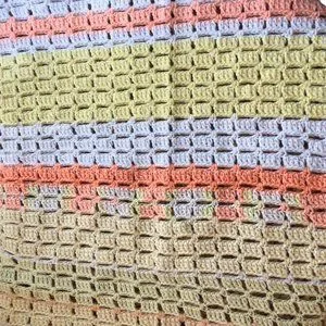 Pair her with this sweet little bunting blanket in colors of soft oranges, yellows, creams and white and you have a truly lovely baby shower gift. The handmade blanket measures approximately 27 inches by 27 inches and is in excellent gently used condition. These two items together make an adorable set for a new mama or mama to be. It would also make such a sweet gift for a toddler to a child of about 6 years old. The blanket is small enough to be carried around by a child and could become their new security blanket and the giraffe may be the sweetest stuffed animal you've ever seen.
