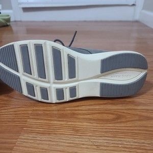 Bottom of shoes have a little wear and are a bit dirty, minimal