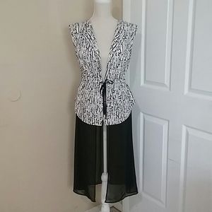 Brand New Alberto Makali long vest open or tie waist closure. Beautiful black sheer bottom. Sleeveless.