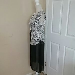 Alberto Makali Black & White Tie Front Long Vest Dress