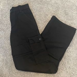 Black cargo, light weight comfy material, worn once brand new, size small fit like a 25/26 waist