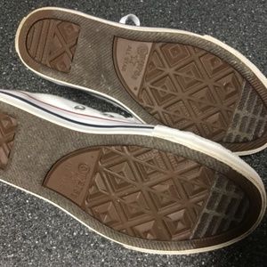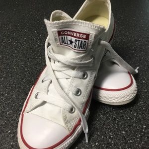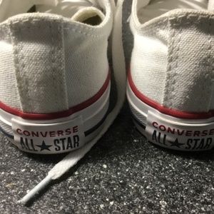 Preowned Converse Allstar White Chuck Taylor. Size 2 Youth. EUC. These shoes show hardly any wear and are clean and white with no footbed staining. Laces are stark white with no staining. From NS home. Have been cleaned and sanitized. See pics for details. All reasonable offers considered.