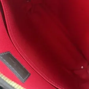 @laurenreese1212 are you talking about the picture with the red strap? If you are, I believe it’s the lighting. Only scuffs it has is on the front of the bag. Everything else is in good condition.
