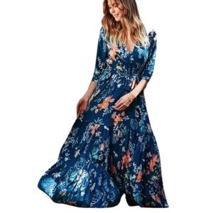 Jade Mia Maxi Women’s In Miak Print Smock Waist 3/4 Sleeve Multicolor Dress XS