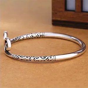 Awesome NEW Real Solid 925 Sterling Silver Carved Buddhist Adjustable Bracelet. The Unisex Love Cursive Swirls are Beautifully Displayed Next to Gorgeous Handmade Engraving. Comes in a Velvet Storage Bag.