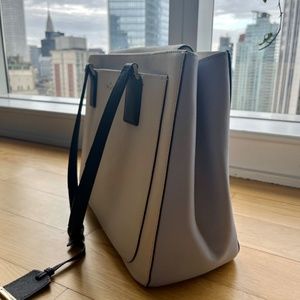 Gorgeous minimal sleek Kate spade tote bag in cement/morning multi and great condition will go with absolutely any outfit! With tons of pockets and zippers, it will fit everything you need!