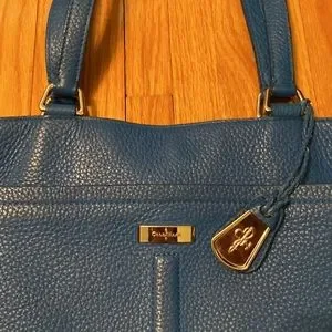 Cole Haan blue leather tote bag 💙 with tan CH lining.