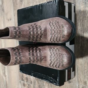 NOT RATED KYLA FAUX LEATHER WOVEN BLOCK HEEL WESTERN ANKLE BOOTIE