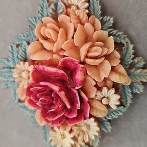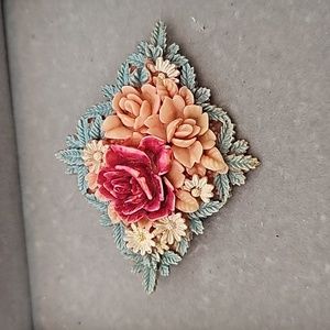 Vintage Gorgeous raised rose plastic brooch, no chips or cracks in perfect condition