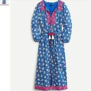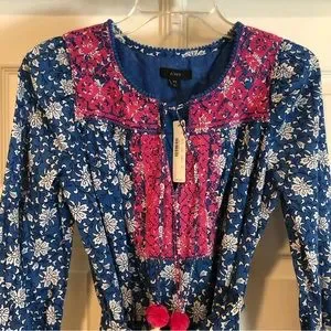 NWT J Crew Dress Boho Belted Tunic Dress in Night Sky block print XS AP194