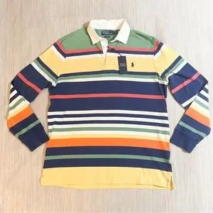 POLO RALPH LAUREN Blue Multi Classic Fit Striped Iconic Rugby Shirt🔥🔥🔥