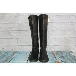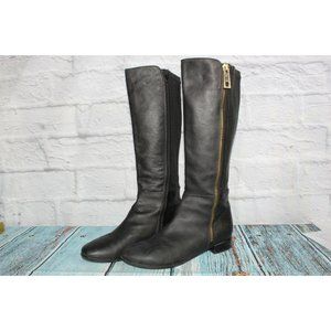 Napoleoni Black Leather Gold Plated Zipper Knee High Boots Size 39 / 9